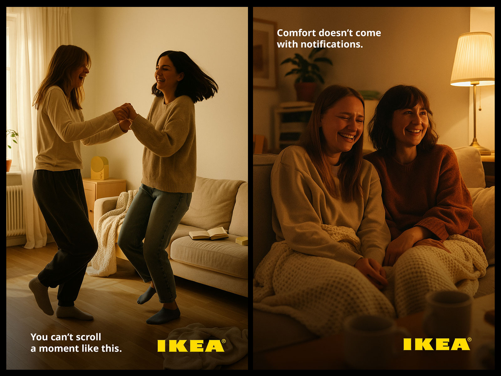 A concept campaign showing IKEA as the place where life finally slows down, celebrating small, quiet, human moments no screen or algorithm can replace.